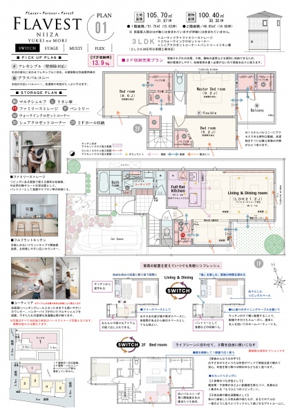 東武東上線『新河岸』駅徒歩18分、JR川越線「川越」駅徒歩37分(自転車9分※実測) ◆全12邸、120㎡超 ◆ナチュラルモダンな佇まいを演出するアクセントとなるサイディング ◆豊かな風景を創る植栽計画 ◆ゆとりをデザインした住まいのかたち ◆1階/木の素材と空間が魅せる3つのプラン 【ステージリビング】家族が程よくつながる、開放的なステージ空間がある暮らし 【フレックスルーム】変化する暮らしに寄り添う、自由自在な続き間空間のある暮らし ◆2階/ドレスコーナーが叶えるゆとりの暮らし 【ドレスコーナー】スリム洗面台+収納(またはストレージ) ◆デザイン性と機能性を誇る、快適な日常をサポートする設備